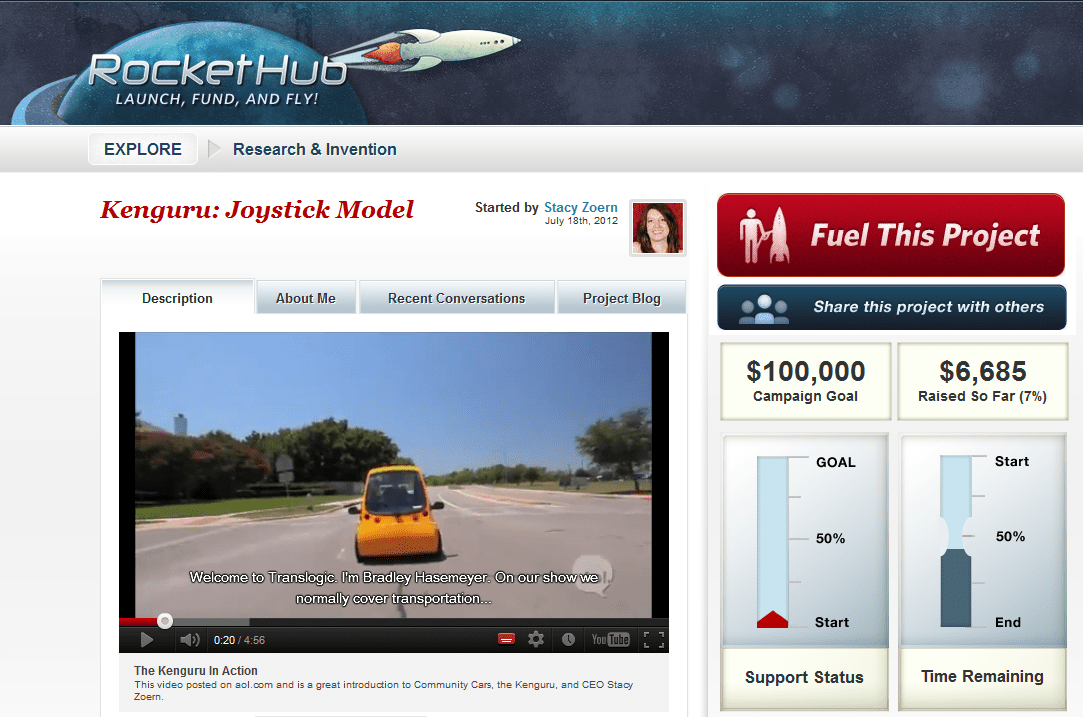 Autorzy projektu próbują zebrać $100 000, między innymi przedsprzedając pojazdy. Docelowo koszt jednego Kenguru wyniesie $25 000, ale na Rockethub, można go zamówić za $18 000.